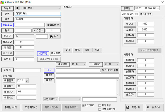 입력하고자 하는 품목이 등록될 대분류를 먼저 선택한 후, 하단의 추가버튼을 눌러주세요.