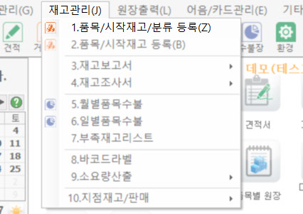 프로그램 상단 메뉴 [재고관리] -> [ 품목 / 시작재고 / 분류등록 ] 을 선택합니다.