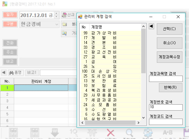 관리비계정 검색창이 나타납니다. 여기서 원하는 계정을 선택해 주세요!