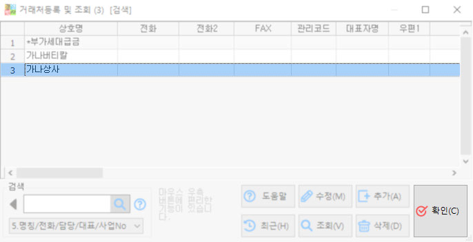 원하는 거래처를 선택하고 확인을 눌러주세요!