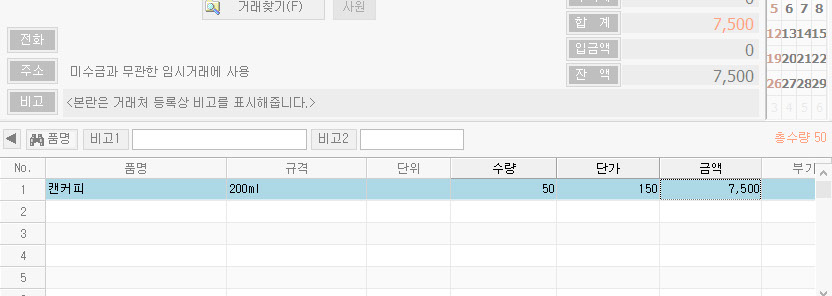 거래명세표입력에서 입력한 내용을 수정하는 방법