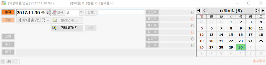 당일 혹은, 이전 일자에 입력한 거래명세표 검색 방법